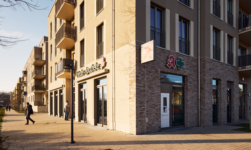 Der neue Standort der Flieder-Apotheke befindet sich im Quartier an der Dahme, das historische Bausubstanz mit moderner Stadtentwicklung verbindet. Die denkmalgerecht sanierten Gebäude rund um die Villa Bolle schaffen ein besonderes Umfeld direkt am Wasser.