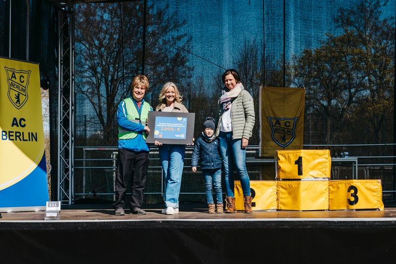 v.l.n.r.: Doris Nabrowski (Vizepräsidentin für Migration, Umwelt und Öffentlichkeitsarbeit beim HELLERSDORFER ATHLETIK – CLUB BERLIN e.V.), Stefanie Greske (Regionalleiterin bei Deutsche Wohnen) und Paul und Yvonne Weise (Regionalleiterin bei Deutsche Wohnen)